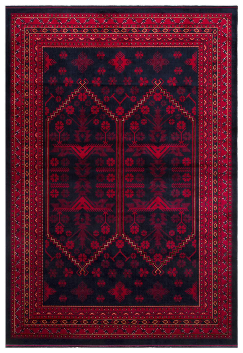 Afgan Desenli Viskon Sıkı Dokuma Kaymaz Tabanlı İnce Makine Halısı